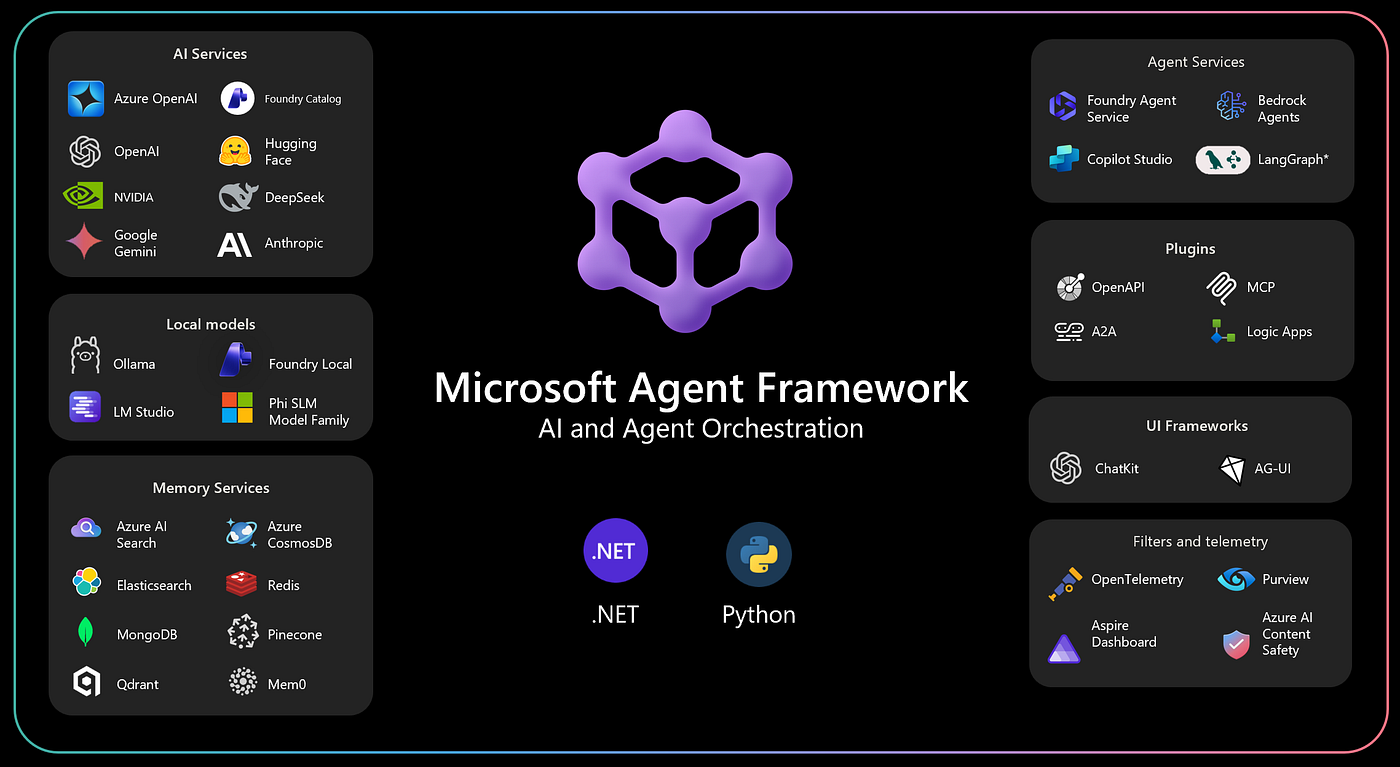- 开发者工具: DevUI 提供交互式开发、测试和调试界面;AF Labs 包含基准测试、强化学习等实验性功能。