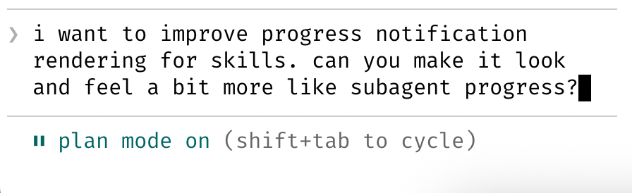 Plan 模式下,Claude 不会直接改代码,而是先给你一个执行计划。你可以来回讨论、修改计划,直到满意为止。然后切到自动接受模式,Claude 通常能一次性完成。