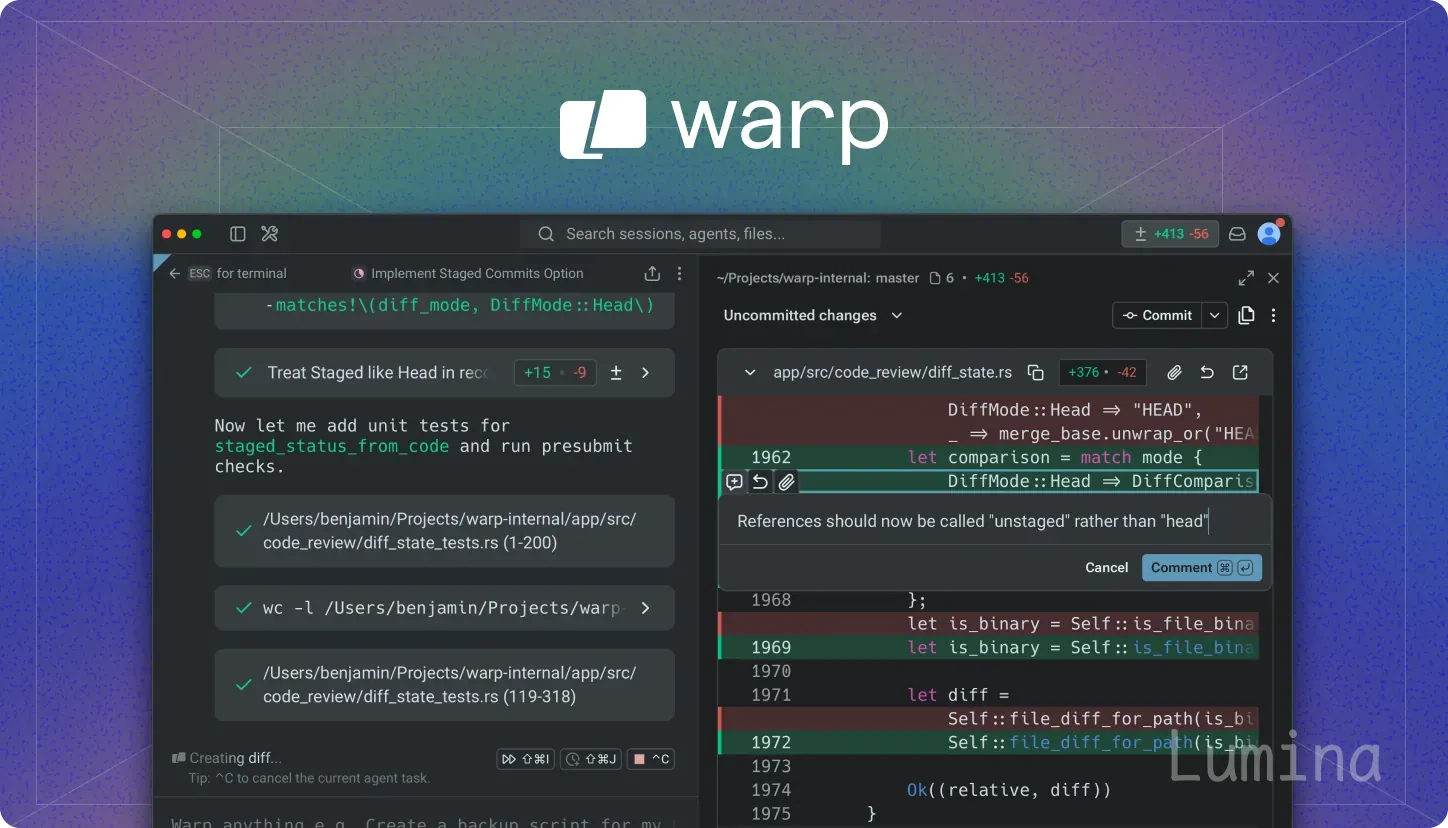 Warp是一款基于终端的智能化开发环境,由OpenAI赞助开源。其核心代码采用AGPL v3许可证,UI框架采用MIT许可证。项目支持内置编码代理及第三方CLI代理集成,提供完整的本地构建流程和社区贡献机制。