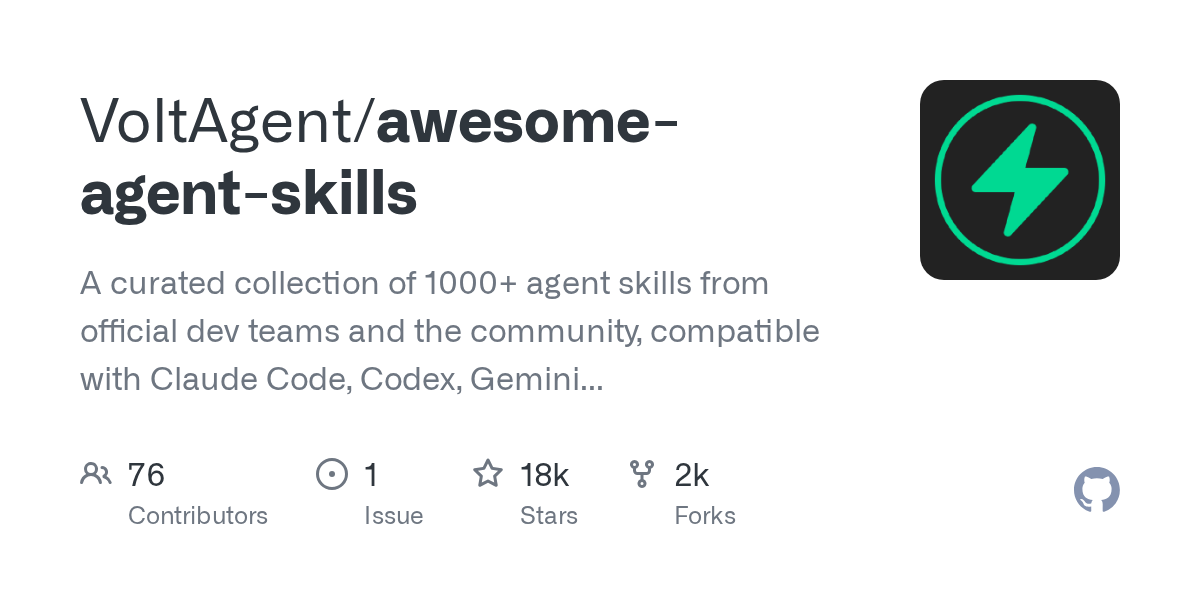 该开源仓库人工精选并规范收录1000多个来自Anthropic、Google、Vercel、Stripe等团队的官方AI Agent技能,兼容Claude Code、Cursor、GitHub Copilot等多种编码助手,统一安装路径与质量安全标准,核心价值是替代低质批量生成技能库,帮助开发者更可靠地发现、安装和复用真实可用技能。